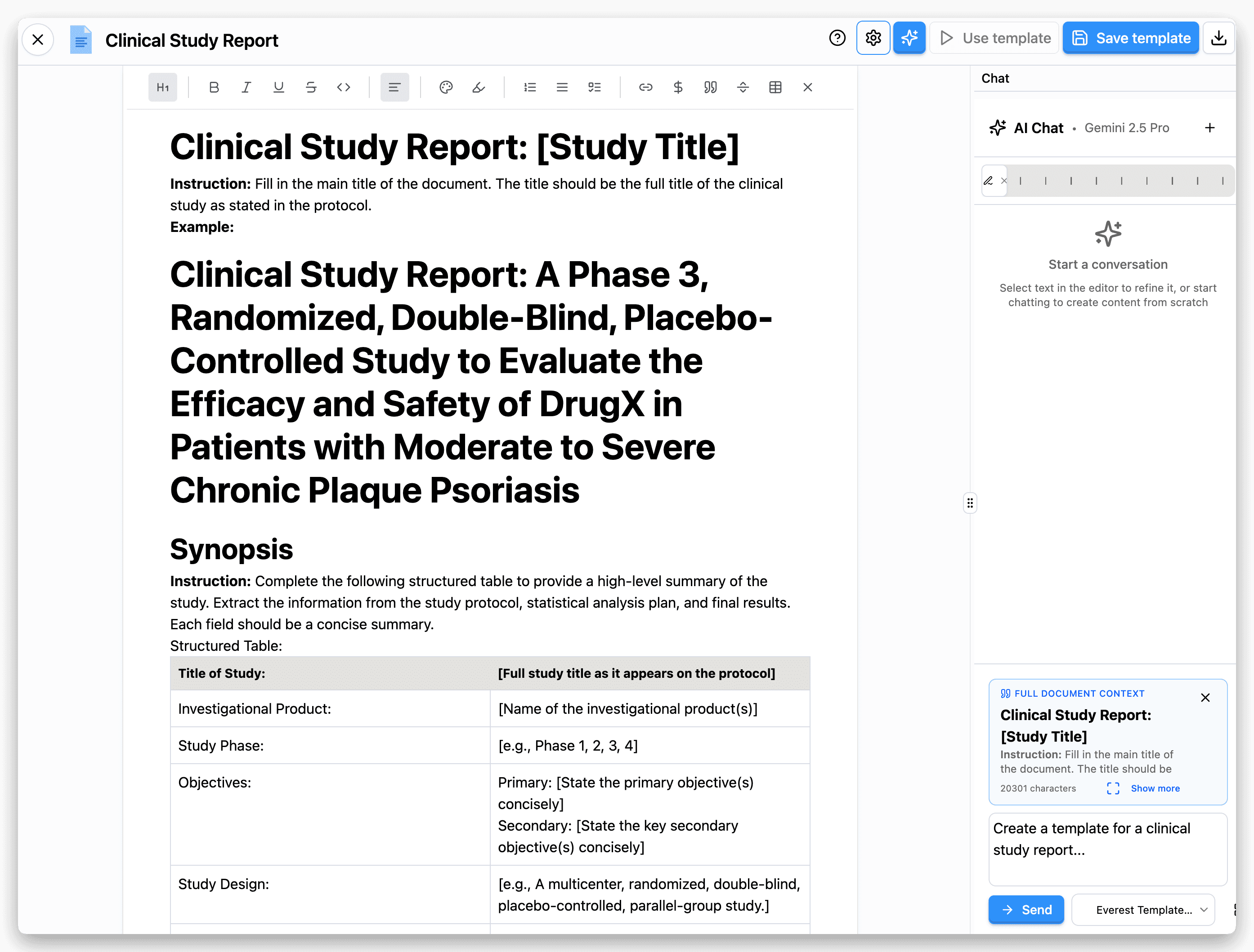 Today we’re launching a major upgrade to the Everest authoring experience. We believe workflow-driven AI authoring, while keeping humans firmly in control, will become the new standard for producing regulated and high-stakes documents.